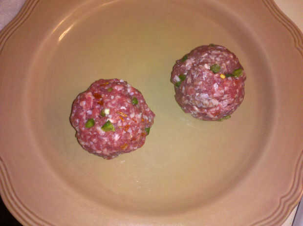 1. Extienda una mano llena de la llama carne en forma de bola.