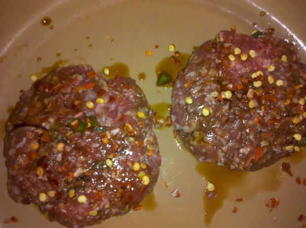 Nota: La carne en cada patty concluyente presionar juntos. Si la carne no es pegada junto bien, las hamburguesas se deshagan en la parrilla.