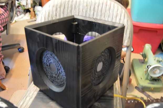Ahora tienes que añadir a la caja. He utilizado pegamento puntos, pero se puede utilizar cinta adhesiva o pegamento. Dependiendo de sus recursos. No todos los lados, y que ha completado su lámpara!