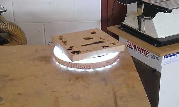 Aquí es donde las barras de acrílico en el juego. con tornillos pequeños para madera, los PCB hasta la ranura del tornillo, perfore un pequeño agujero en la parte inferior del anillo para que todos los cables se pueden alimentar a través de conectar la base.