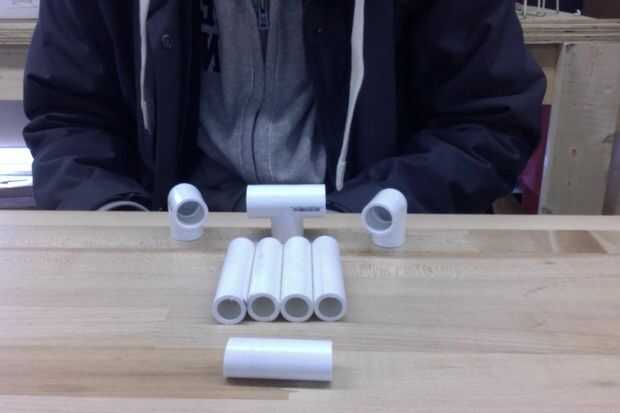 materiales:LETRA A-2: 90 grados de codo2: conectores de T4: 4 pulgadas PVC2: 6 en. PVCLETRA Z-2: 90 grados de codo2:45 grados codo2: 2 en PVC2: 6 en PVC1: 9 en PVCPaso 1: Reunir los materiales Se reúnen todos los materiales para hacer la letra APaso