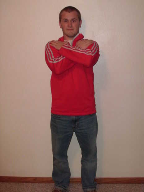 Tomar la mano derecha y moverla de su posición extendida hacia su cuerpo y colóquelo en su hombro izquierdo. Después de hacer esto, hacer el mismo movimiento con tu brazo izquierdo, sacarlo de su posición extendida y apoyada en su hombro derecho. Es importante tener en cuenta que la canción tiene un ambiente particular a él y le animamos a usar las caderas y las rodillas para hacer el baile más personal para usted.