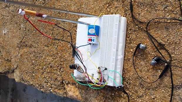 Pueden hacer emisión de radio de Am con componentes simples:1 transistor 2n2222mega ohmios de 1 resistencia 1470 ohm de 1 resistencia1 condensador de cerámica de 1 nf "102"1 condensador variable 5-250P de una vieja radioCentro tap bobina con núc