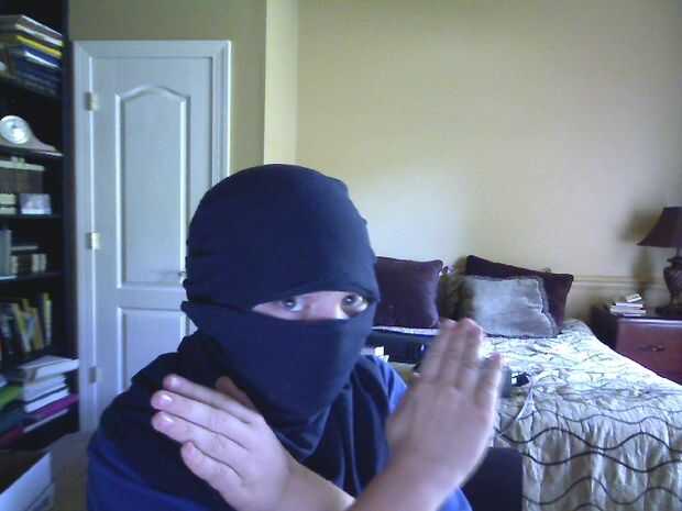 esto te mostrará cómo hacer una máscara de ninjausar una camiseta negraPaso 1: 1 conseguir una camiseta que es de color negrausé blanco para mostrar el detallevuelta de adentro hacia afueraPaso 2:2 tire de ella en la cabeza con el agujero en su cabez