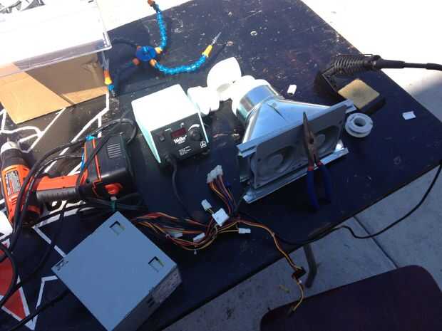 1) comenzar por averiguar cómo conectar sus ventiladores de ordenador. Recuperadas de un ordenador viejo o los compró nuevos, habrá innumerables formas diferentes de les energía. Averiguar que funciona de la manera mejor para usted. Para mina, usé dos fans de antiguas torres de Apple G5 y había alimentado con una fuente de alimentación de ordenador viejo.