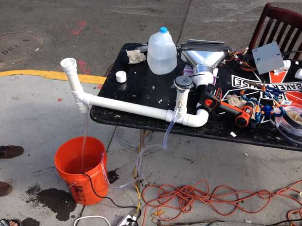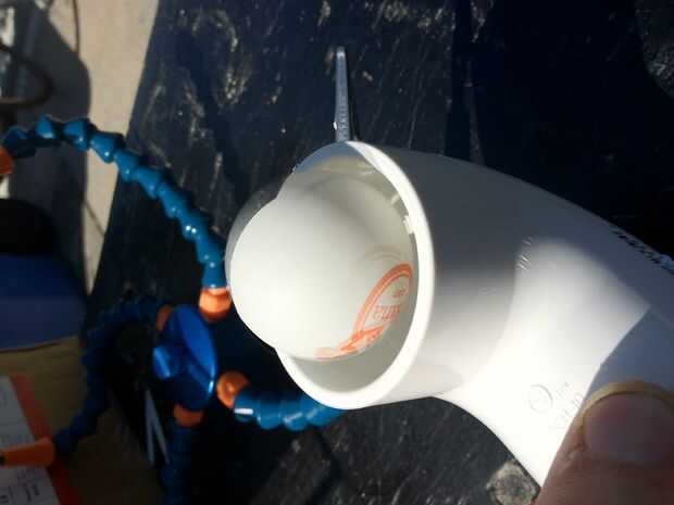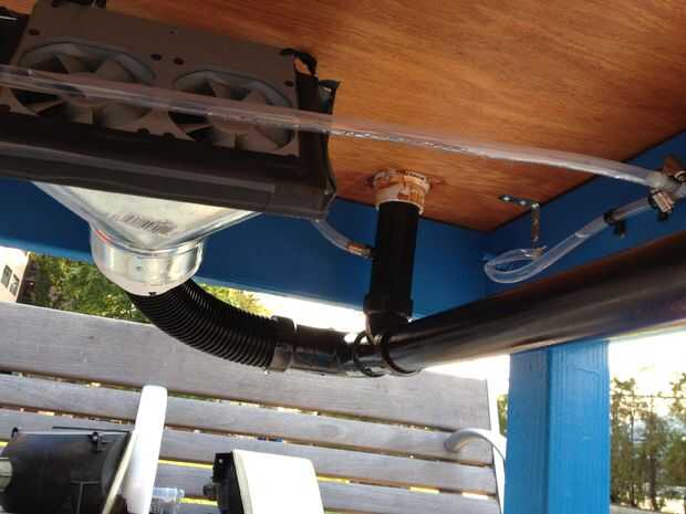 4) pegar con cemento de PVC las conexiones de PVC y sellar con Goop las otras áreas. Hacer sur eno no pegamento la aspiradora de taller de la manguera abajo como esto es útil para soltarse en caso de bolas se atascan en el sistema.