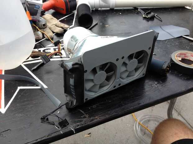 5) Conecte los ventiladores a Ventalation pieza y sellar con goma y cinta.