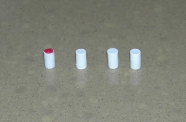Yo uso las gomas de borrar bic para este paso. puede personalizarlos para diferentes situaciones. color uno rojo por lo que se puede ver en un piso blanco. Otros borradores podrían trabajar sin embargo.
