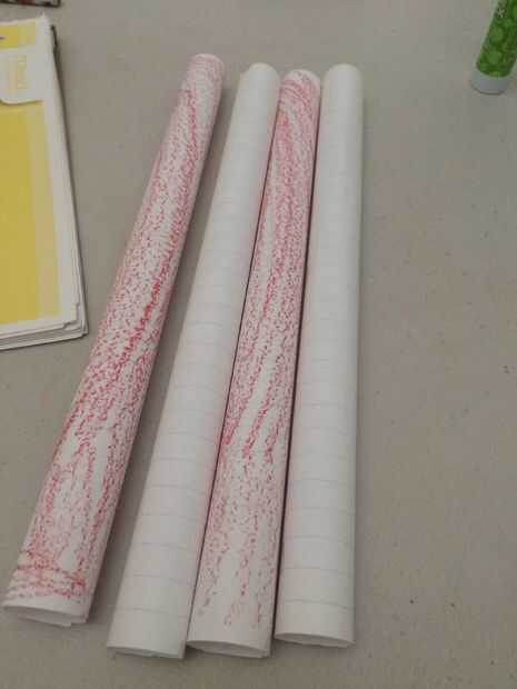 2 obtener hojas de papel, cortar por la mitad y enrolle con el pegamento y cinta.