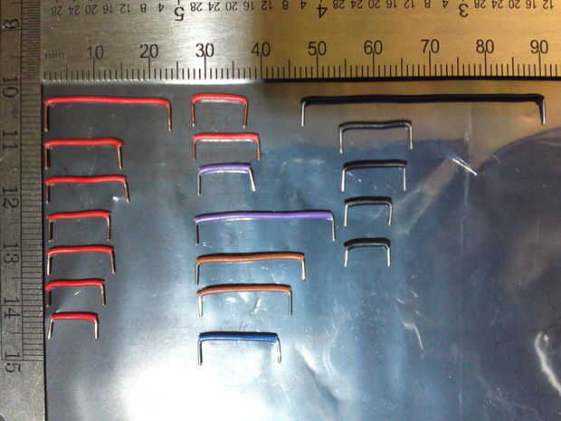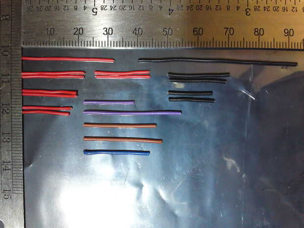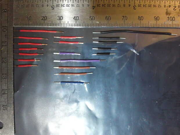 - Ahora, comience cortando algún alambre de núcleo único en diferentes longitudes (o simplemente picarlos como go!) para que tu aventura de protoboard para este proyecto irá un poco más rápido y he incluido un par de fotos con una regla para mostrar todos los enlaces de cable que utilizan para que pueda ver más o menos qué tipo de longitudes son necesarios pero no tengo mi cable une 1-momento perfecto y toma varios intentos para obtener la longitud correcta pero esto es bueno porque sólo significa que con los colores de los enlaces de alambre que has hecho mientras que lo que para este proyecto significa que se pueden utilizar en muchos otros proyectos también en el futuro por lo que costumbre ser un desperdicio para tratar un par de veces para hacer los lazos de alambre!