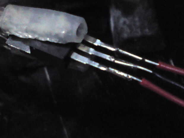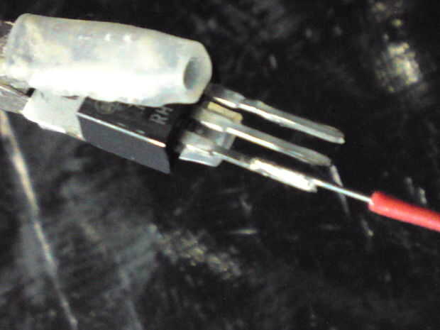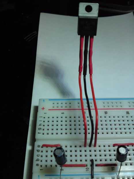 Lo 1 º que hago es soldar algunas piezas cortas de cable single-core en las patas de los reguladores de tensión de tipo TO-220 (asumiendo que usted utilizará este regulador de voltaje siempre exclusivamente con fines de creación de prototipos y no soldar en un permanente proyecto de Arduino para su siempre Dab-útil tener algunas de estas en su inventario de componentes!) y después de soldar uso termo-retráctil para cubrir todos los cables que no quiero crear y bare-metal expuesto cortocircuitos al usar éstos en mi breadboards...