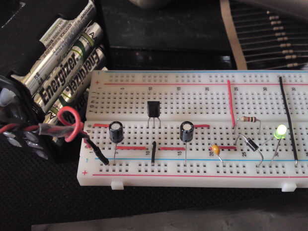 También se puede ver en la imagen abajo (imagen 17) que he añadido un interruptor SPST de Deslice mi batería porque me gusta introducir los cables en mi breadboards y no alimentar cualquier mis componentes hasta que me he Tripple-Checked todo lo he hecho hasta ahora porque...