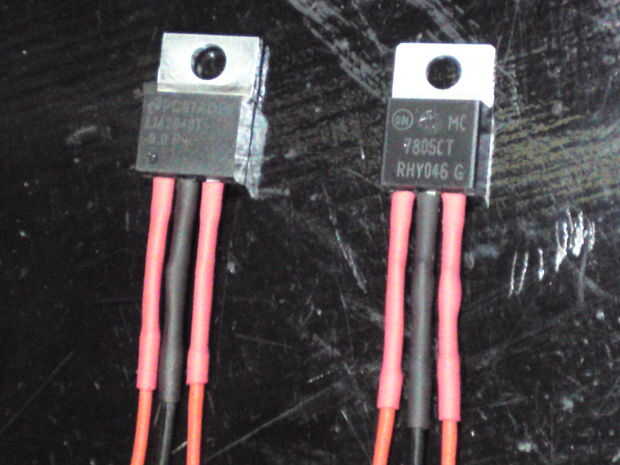 Reguladores de voltaje usado - por favor mirar en sus hojas de datos para asegurarse de que obtener los pasadores en los agujeros de la derecha para conectar!! L7805CV - 5 v a 1,5 amperios (1500mA) KIA78L05 - 5v @ 0.15A (150mA) - esto ahora se suspende,