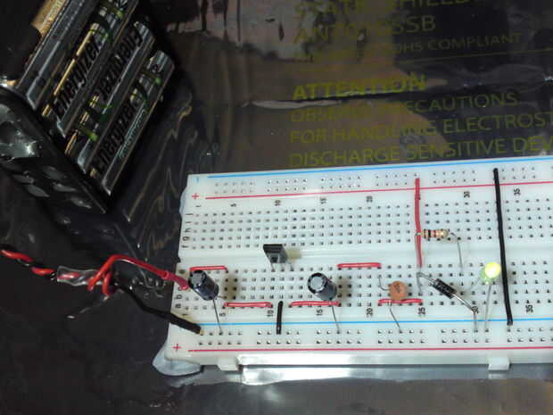 Como se puede ver en la imagen abajo (cuadro 16) estoy usando una batería de 8 pilas recargables de Energizer (1,35 voltios por batería cargada, aprox, para ser usado 10,8 voltios batería - bien dentro de una tolerancia recomendada para el regulador de voltaje para que no pierda mucha eficacia debido a que se sobrecalienta porque si una tensión más alta es bombeada en el más tensión se alimentan a estas cosas - menos eficientes pero no pueden decir que no hacen su trabajo correctamente de suministro de 5 voltios, no no no, sólo que desperdician energía en forma de calor, un voltaje más alto = más calor producido por estas cosas = energía desperdiciada como calor y un drenaje más rápido batería!)