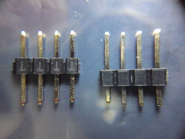 Las próximas 3 fotos a continuación (cuadro 27, imagen 28 y cuadro 29) están mostrando todo lo que hago a estos hombre-pin-headers para hacerlos permanecer insertado en breadboards porque tienden a estallar hacia fuera tan pronto como se inserta, se puede ver en la imagen inferior izquierda 1 (cuadro 27) los tres primeros pines en la parte superior no tienen suficiente cantidad de su longitud a permanecer insertado en breadboards hasta observar el pin pasado que simplemente empujó con el negro plástico de la vivienda, hacer esto para todos los pernos y hará mejor las conexiones en el protoboard para más tarde subir bocetos! La imagen de la mitad inferior siguiente (cuadro 28) muestra un conjunto de cuatro clavijas que he empujado a través del plástico para hacerlos una longitud incluso en ambos lados y los dos conjuntos de pines que se muestra en la fotografía de abajo a la derecha (cuadro 29) muestra cómo vienen normalmente y mis patillas de longitud (casi!) igual de ambos lados!