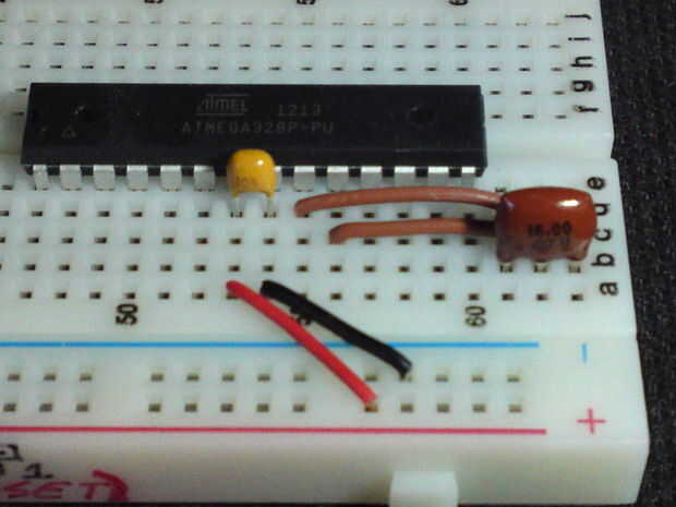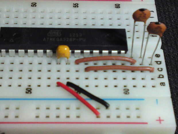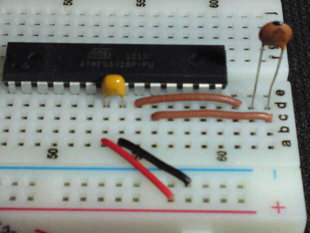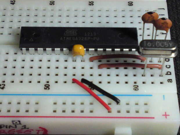 Ahora antes de proceder cualquier otro - este es el tiempo para SLIP ON un Writband antiestático para asegurarse de que no accidentalmente destruir o dañar el precioso ATMEGA328P PU microcontrolador como vas al lugar de lo en el protoboard para este paso y he señalado un buen número de veces el muyREAL-amenaza/s de Daños por ESD en componentes que son susceptibles a este tipo de daño y si sabes lo que tu hacer jus me ignoran en la práctica del senderismo y continuar con esta guía, pero tenga en cuenta que sin la adecuada prevención de ESD - esencialmente podría dañar el Chip ATMEGA y necesariamente no se verán inmediatamente que su estado dañado pero aún podría tomar meses antes de falle completamente así que la prevención es mejor que una cura siempre digo (Fondo de reparación de computadoras para mí!) así que como observan cuidadosamente estos consejos no debería ser ningún problema...
