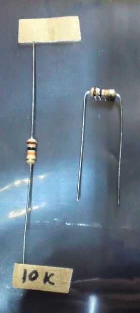 Comienzo tomando la resistencia K duran 1 (colores: marrón, negro, rojo, oro ) como se ve en el 1er cuadro pequeño abajo (imagen 1) y la curva es por lo que parece que la pequeña 2 º cuadro a continuación (cuadro 2) y conectarlo como se muestra en las siguientes imágenes (cuadro 3)...