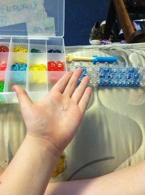 Bandas de goma, telar del arco iris, crochet el gancho y c-clips(in my hand)
