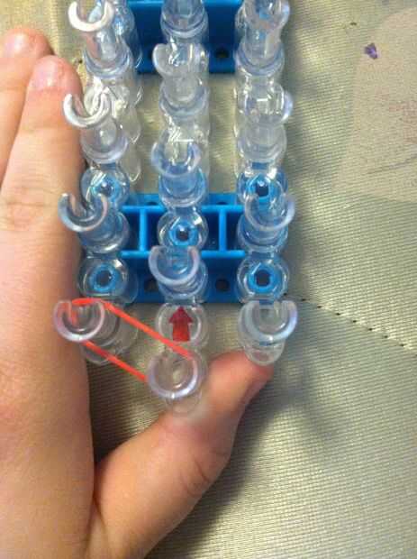 Cómo hacer la pulsera de goma básicos en un telar del arco iris (4 / 13 paso)