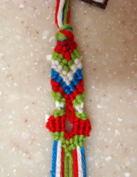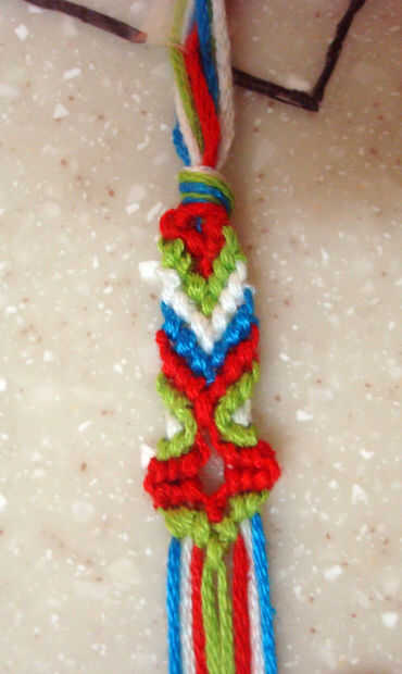 El color principal en esta ocasión será verde y en la próxima ronda será azul y luego rojo otra vez y como tal repetirá a lo largo de la pulsera!