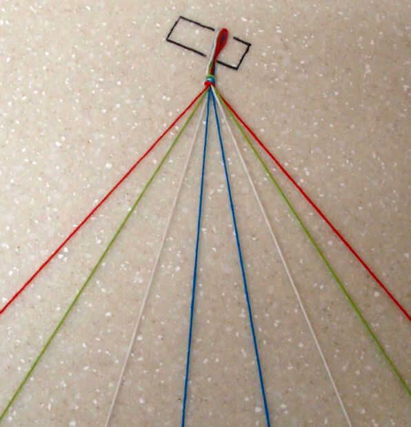 Las cuerdas estarán fuera de orden por lo que tendrá a la fuerza en el orden que desee. En primer lugar, organizar el paquete de lado izquierdo. Decidí que mi orden de color sea rojo, verde, blanco y azul.