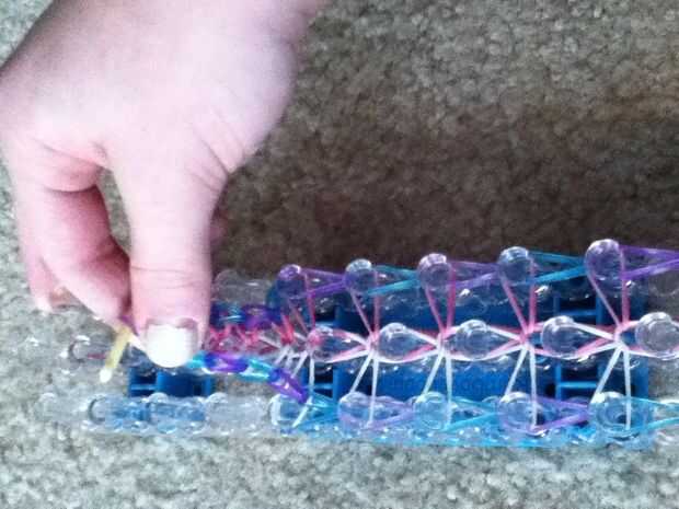 espero que te diviertas.Paso 1: Paso 1. Primera ' el telar y el zigzag de bandas.Paso 2: Paso 2. Luego ' seguir haciendo eso hasta que usted piensa que tiene la pulsera de su tamaño.Paso 3: Paso 3. Siguiente ' tomar su anzuelo y voltee el telar.Paso
