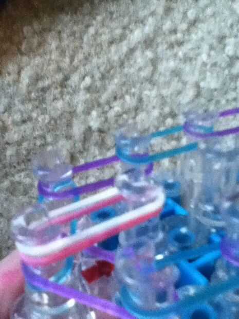 Esta es la pulsera como se verá cuando esté terminado. Yo recomiendo usar 3 colores diferentes para esta pulsera. Antes de poner las bandas en el paso siguiente Asegúrese de que doble todas las bandas, si crees que me refiero a hacer una banda de la