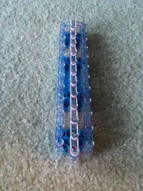 Esta es la pulsera como se verá cuando esté terminado. Yo recomiendo usar 3 colores diferentes para esta pulsera. Antes de poner las bandas en el paso siguiente Asegúrese de que doble todas las bandas, si crees que me refiero a hacer una banda de la