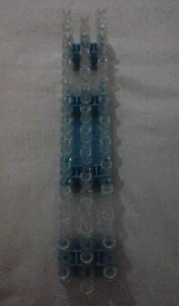 Esta es la pulsera como se verá cuando esté terminado. Yo recomiendo usar 3 colores diferentes para esta pulsera. Antes de poner las bandas en el paso siguiente Asegúrese de que doble todas las bandas, si crees que me refiero a hacer una banda de la