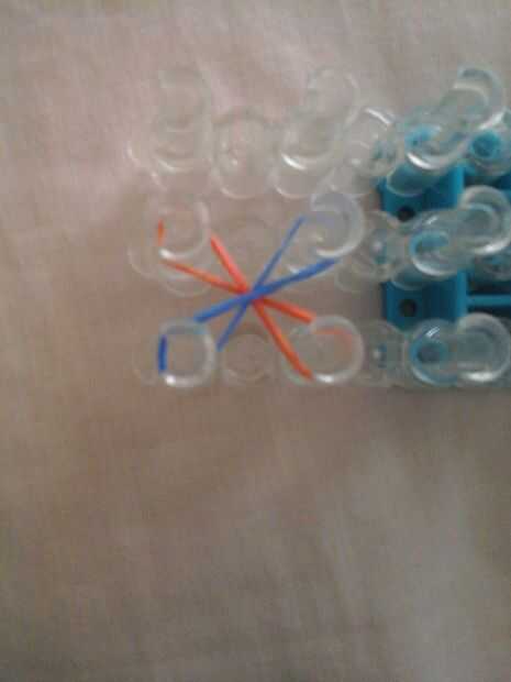 Paso 1: materiales!!! Telar o los dedos o una herramienta, gancho, bandas, clipPaso 2: 1 banda Colocar una banda en una x en la herramientaPaso 3: siguiente Lugar 2 bandas más en la herramientaPaso 4: bucle! Agarrar la banda inferior y coloque encima
