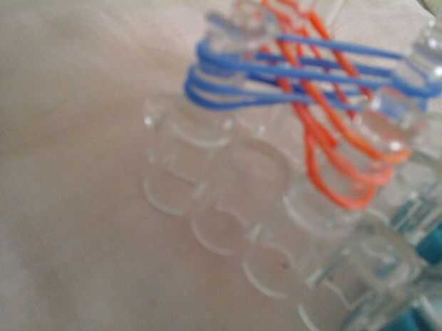 cómo hacer esta pulsera con bandas de goma.Paso 1: Cosas necesarias 1.any loom2,2 colores de su eleccióngancho de 3.aclips de s o c 4,2Paso 2: Configurar Colocar una banda de retorcidos en el extremo del telar, saltar un espacio luego pones uno del m