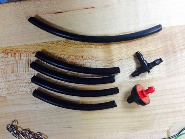 Una vez que la configuración del "juicio" ha sido bien para que la distancia del arco del anillo que se encuentra entre cada par de conectores tee es justo, y la distancia desde el conector t a la olla de malla cortada estos diferentes tamaños de la tubería se pueden utilizar como plantillas que hacer rápidamente y fácilmente más tubería de igual tamaño , y uniformidad en el tamaño es importante aquí. Nota: Los goteros serán realmente ajustar entre el plástico en las macetas de malla bastante bien, que puede servir para ayudar a mantener los mismos en su lugar si la tubería se corta lo suficiente.