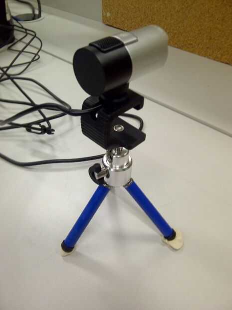 1. una cámara montada en un soporte ajustable o un pequeño trípode