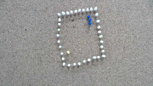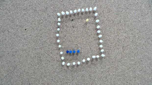Comenzó la animación mediante la adición de tres pines uno a uno y presentó el punto de que la serpiente come alternando el color de la chincheta en cada disparo para tres famas.