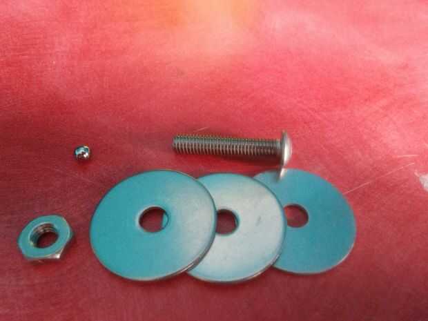 1) 10 x 32 botón cabeza Allen hará perno, aproximadamente una pulgada de largo. (Compruebe que son tornillos de calidad y no tienen ningún labio alrededor del agujero clave que puede perforar el agujero en el centro, la hice en el ' ible fue camino a tambalearse debido al agujero fuera centro)