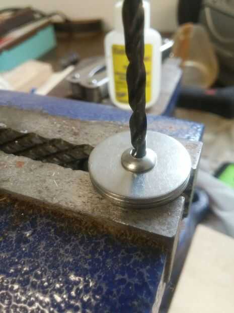 Ahora la broca y taladro para que el rodamiento de bolitas puede ajuste pasado medio camino pulg (o taladrar hasta la forma hexagonal es apenas en la parte inferior.) Después de pop teniendo en y todo conjunto. Nota: Porque la parte superior que hice aquí tenía problemas con una bola fuera centro, tomé una imagen de la buena que hice antes de la última foto.