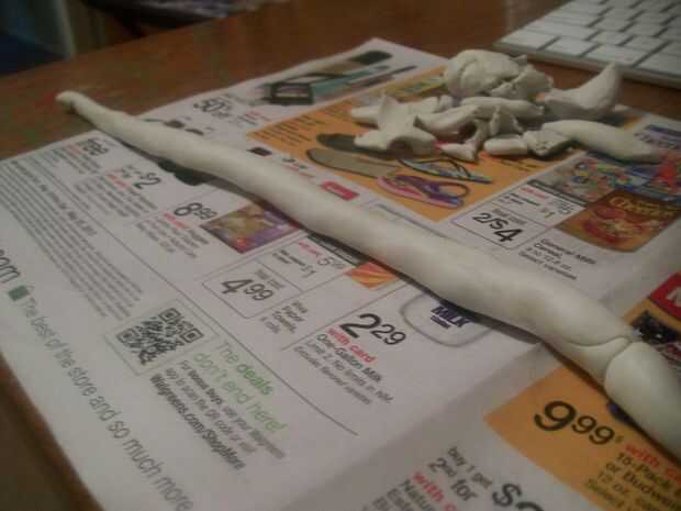 trata de cómo hacer una varita de saúco fiar fuera único: un pinchouna pistola de pegamentopintura marrónpintura blancauna plumaPaso 1: Pistola de pegamento de uso hacer bolas Utilizar el arma de pegamento para hacer las bolas hacia abajo de la varit