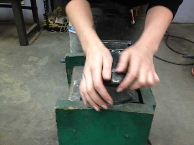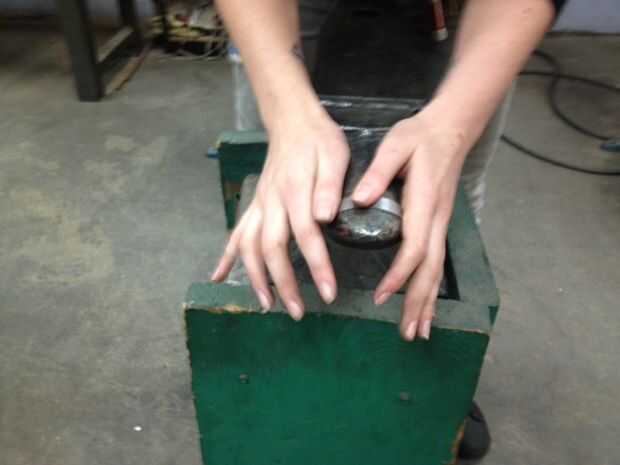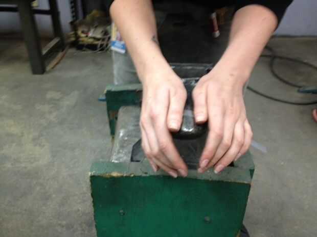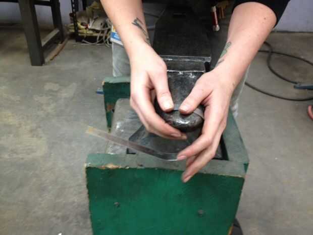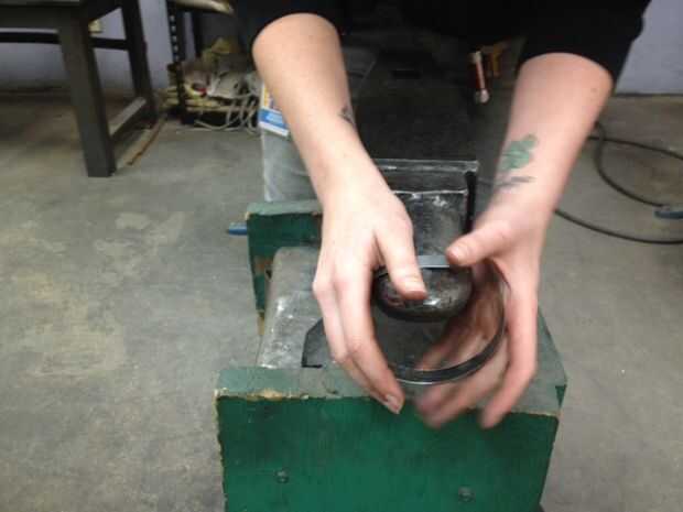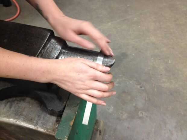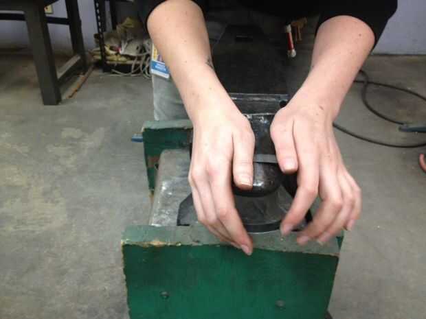 Para esto utilicé un yunque y grasa de codo. Simplemente coloque la tira en el yunque con el centro en el punto más alto del curva final del yunque. Luego le dan algo de presión. Aplique la misma cantidad de presión mientras mueva mueva su franja. Hacerlo en ambos lados y su círculo comenzará a forma. Se puede aplicar más presión para hacer un círculo más o menos para que sea grande si tienes el material para él.