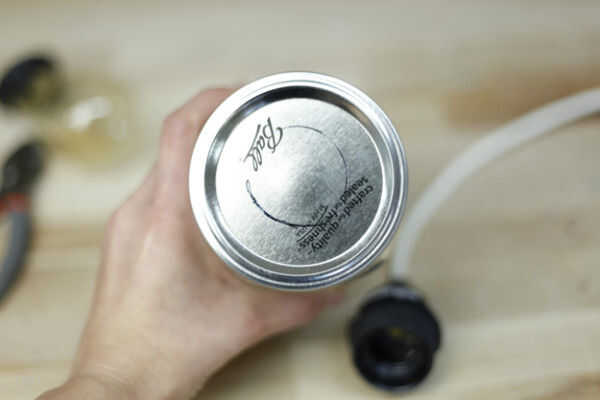 MaterialesSoldadura B JLámpara simpleBombillas de vatios pequeños que caben en la luminaria (número de partido de zócalos de lámpara)Tarros de Mason (número de partido de zócalos de lámpara) con tapas superior abiertasPintura en aerosol del color des