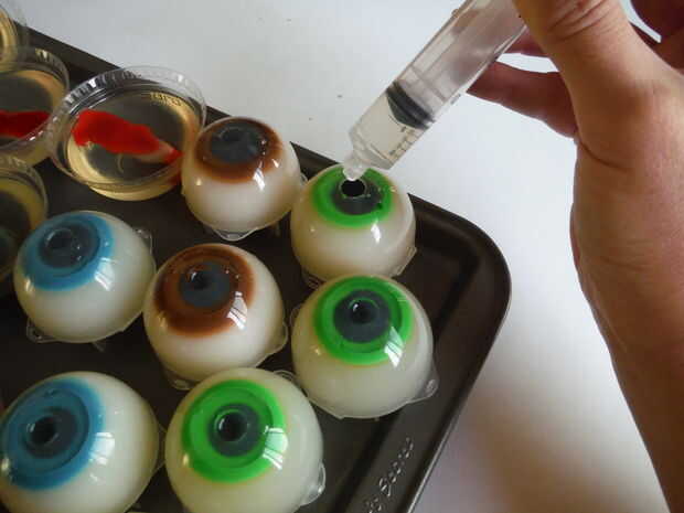 Para desmoldar los globos oculares, suavemente y lentamente abrir el recipiente redondo, dando el tiempo de gelatina para destrabar de la parte superior del contenedor. Tire hacia atrás de los lados del globo ocular para separar de la parte inferior la mitad del recipiente redondo. Agarrar con cuidado el globo del ojo y tire para arriba lentamente, y debe quitar fácilmente del envase y no se despegan.