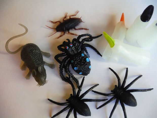 - los dedos de plástico arañas, ratas, insectos,