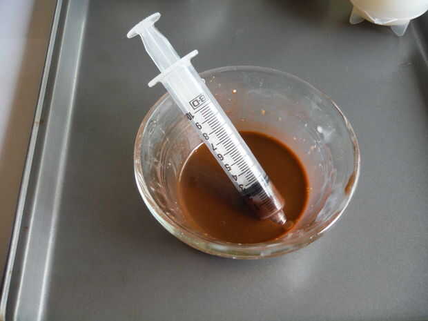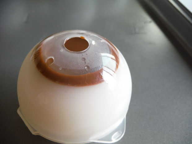 Goteo de color gelatina de leche en el agujero hasta que la parte de iris formado. Permiten gelatina hasta que esté firme en el refrigerador (se fijó rápidamente en minutos). Agregar una gotas de gelatina de leche negro hasta que el alumno se crea y permiten gelatina hasta que esté firme en el refrigerador (probablemente ya se establecerá desde la frialdad del resto de la gelatina incluso antes de que termine la tanda!).