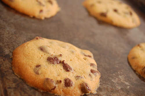 Poner las galletas en el horno durante 10-15 minutos. Dejarlos reposar en la bandeja para hornear galletas 3-4 minutos. Luego con una espátula tome las galletas de la bandeja para hornear galletas y allí ve que usted ha hecho una tanda de galletas de chispas de chocolate.