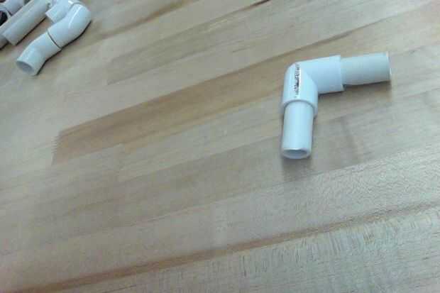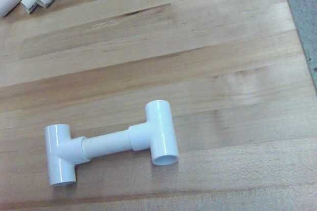 H: Comience tomando dos piezas t y corte las medidas apropiadas. tomar un tubo de dos pulgadas y colocar entre las piezas de dos tee.