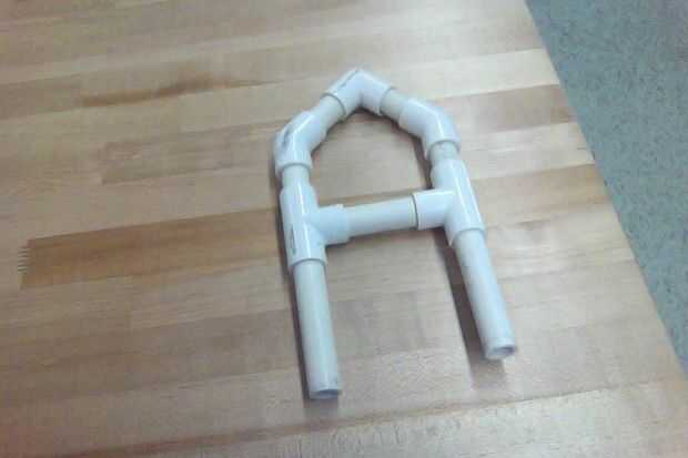 A: su trabajo aquí está casi listo, tienes mayoría de la carta hecha. Ahora que tienes la parte superior de la letra hecha, puede Agregar los tubos de 4 pulgadas en la pieza de tee. Haces lo mismo para cada lado. Hay que ir usted acaba de hacer la letra A utilizando tubos de PVC y accesorios.