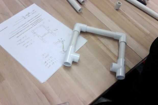 va a crear dos carta una V y P de tubería de PVC y accesorios. Las letras no pueden exceder 24 pulgadas por 24 pulgadas.Los accesorios se puede utilizar:codos de 90 gradosconexiones de 45 gradossalidas laterales de 90 gradosUniones en TTubo de PVCPas
