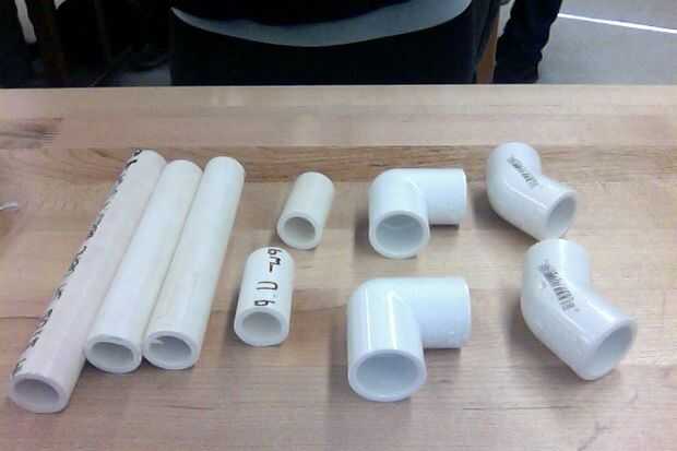 Materiales: -Dos codos de 90 grados -Dos codos de 45 grados -Dos tubos de PVC de 1 pulgada -Dos tubos de PVC de 5 pulgadas -Un tubo de PVC de 6 pulgadas
