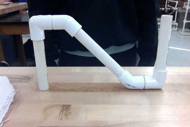 Por último, conecte los tubos de PVC de dos 5 pulgadas a los otros extremos de lo codos para crear la forma N de 90 grados.