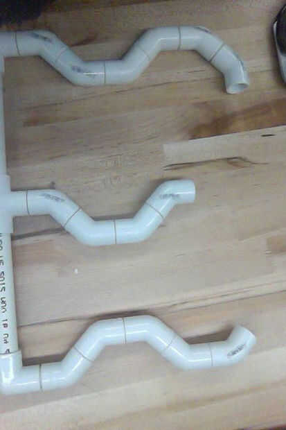Cada línea ondulada tiene 4 a cinco accesorios de 45 ° y 1.5" de piezas. La superior tiene 5 secciones, el medio tiene 4 secciones y el inferior tiene 6 secciones.