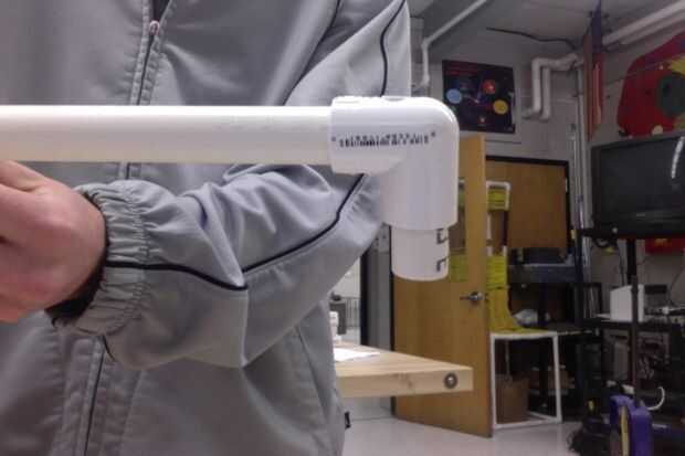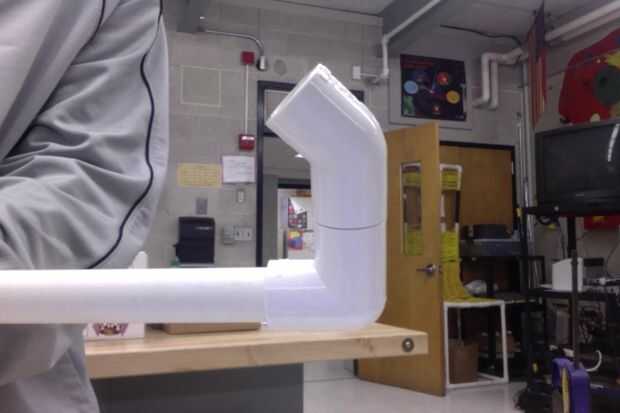 a continuación fije el tubo de 1,50" para el codo de 90 grados en el último paso. Se trata de la pieza intermedia que nos permitirá conectar un codo de 45 grados sin tubería mostrando. Una vez en el tubo, seguir adelante y fijar el codo de 45 grados a la tubería de 1,50".